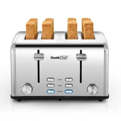 Use 4-Slice Toaster to bake perfect slices of bread. This toaster is made of stainless steel, which is strong and durable. This toaster has a variety of finishes for you to choose from. It has four automatically adjustable slots, which can bake four slices of bread conveniently. This 4-slice toaster has an automatic power-off function, which can stop the process when the toast gets stuck, ensuring that toasts, bagels, muffins, etc. are brown every time it is used. The toaster provides a thawing setting for baking frozen foods, a reheat setting for heating previously baked foods, and a bagel setting for heating the outside and baking the bagel sections. The deep and wide slot can easily put all kinds of bread and take it out. This toaster has a power indicator light. This toaster can be easily cleaned with a soft dry cloth. It saves space and fits any kitchen counter whether it is placed on the side or facing forward. Two crumb trays in the rear of the toaster to collect the bread crumbs, and they can be easily removed and cleaned.