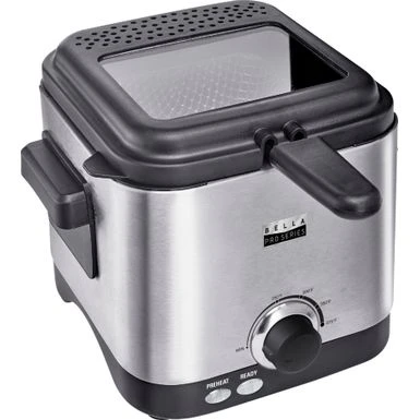 Fry up multiple foods effectively with this Bella Pro Series 1.6-qt. Deep Fryer. The brushed stainless steel housing holds up well to consistent use, while a 2.3-cup basket capacity accommodates a range of culinary needs. This Bella Pro Series 1.6-qt. Deep Fryer features a large viewing window on the lid for safe food monitoring.