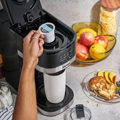 - Includes a reusable carafe size coffee filter, a k-cup adapter, and a reusable single serve coffee grounds filter.