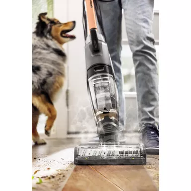 Tackle tough pet spills and stains with the power of HydroSteam. HydroSteam technology – clean across multiple surfaces and tackle the toughest messes. Tangle-free brush roll – reduces pet hair wrap. Multi-surface cleaning tackles spills on sealed hard floors and area rugs. Self-cleaning cycle helps maintain the cleaning performance. Two-Tank technology. 25ft Power cord. 17oz Dirt cup capacity. 28oz Clean tank capacity. Includes: 8oz Sanitize formula. 8oz PET Multi-surface formula. 8oz FreshStart Clean Out formula. 2 CrossWave filters.