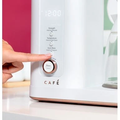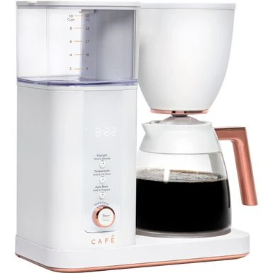 Nothing about your personal style is standard. So why should your appliances be? Created for those who want to reflect their true style in every room of their home, Café is distinct by design. Backed by showstopping features, every Café appliance gives you the form and the function you’ve been craving. Now you can bring that exceptional style to your countertops thanks to elegant and innovative drip coffee makers from Café, which are as intelligent as they are beautiful. All Café coffee makers are WiFi enabled and feature Voice-to-Brew capabilities, connected through the SmartHQ app and compatible with Alexa and Google Home. Precision Temperature Controls and Select Brew settings allow even the most discriminating coffee connoisseur to enjoy the ideal amount of coffee at the ideal brew, without ever sacrificing flavor or performance. The modern, clean cord storage beneath the coffee maker keeps countertops clutter-free and pairs perfectly with the signature Café copper accents that truly mark these as stylish appliances.