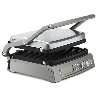 - 6 cooking options in 1: Contact Grill, Panini Press, full grill, full griddle, half grill/half griddle, and top melt