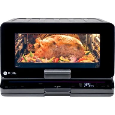 - Get unmatched performance with this smart countertop oven with 11 preset functions, including Air Fry, Warm, Toast, Broil, Roast, Cake, Reheat, Pizza, Cookies, Bake and Bagel. Download more functions via the SmartHQ app as they become available.