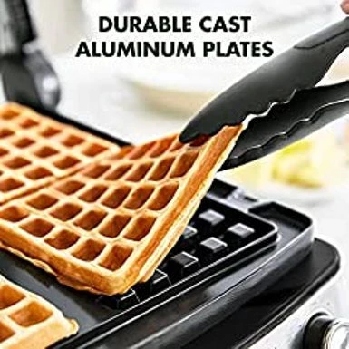 - Two sets of waffle plates make it easy to perfect classic American-style waffles and thicker Belgian waffles