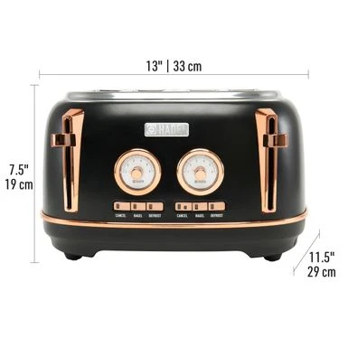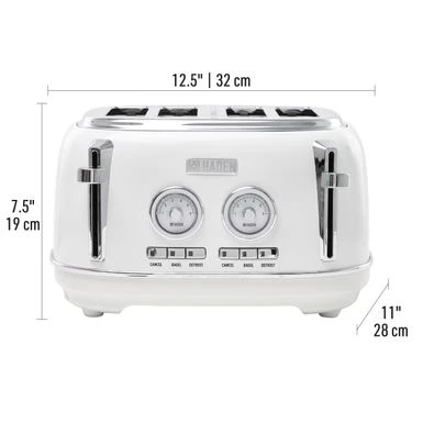 Introducing the stylish Dorset range of 4-slice toasters by Haden. With a traditional design and shape, this beautiful four-slice toaster features convenient cancel/defrost/reheat settings, self-centering function, and a removable crumb tray for easy cleaning. Lighten up your morning routine  and upgrade your kitchen counter with this elegant toaster and matching kettle. Available in Retro Red and Putty, also available in 2-slice Toaster model# 75001(Red) and 75003(Putty).Â