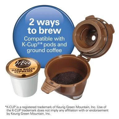 Brew a cup of hot, delicious coffee with the FlexBrew Single-Serve Coffee Maker and enjoy the flexibility of brewing 2 ways. Brew a cup of hot, delicious coffee with the FlexBrew Single-Serve Coffee Maker and enjoy the flexibility of brewing 2 ways. Simply add your favorite brand of pod (such as a K-Cup* pod) or coffee grounds, add water, lower the lid and press a button your coffee will be ready in about 2 minutes. Using a pod lets you brew up to 10 oz. of coffee, and using coffee grounds lets you brew up to 14 oz. of coffee. The slim design of the FlexBrew Single-Serve Coffee Maker is not only attractive, it saves counter space and fits practically anywhere since it measures less than 5″ wide. Touch-sensitive, capacitive controls provide easy operation and let you choose from regular and bold brewing options. The 14 oz. water reservoir is easy to fill, and the removable cup rest lets you brew into a standard-size cup or 7″ tall travel mug. The convenient storage area inside the cup rest holds either the pod holder or single-serve brew basket.