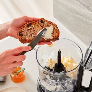 Explore meal-making possibilities with the 3 speed options and the ability to chop, shred, mince, slice, knead, whip, mix and puree everything from fresh veggies to cheeses, doughs, sauces, salsa and so much more. The improved multi-purpose 4 blade allows you to process tougher ingredients and even mince meat in 10 seconds*. Or, whip up a fresh butter, and incorporate your favorite herbs, with the whisk accessory. In addition to being easy to use, all of the accessories fit nice and neat directly inside the 9 cup bowl. Or store ingredients for later use, directly in the work bowl, with the refrigerator lid. *Based on 500g chicken, beef and pork