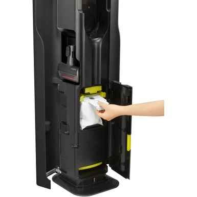 - A clean home and clean hands—thanks to Auto Empty! Dock this LG stick vacuum in its All-in-One Tower and Auto Empty takes over, automatically opening the bin and depositing the contents into a larger collection bag, without scattering debris all over your clean home.
