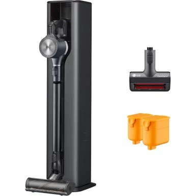 Get hands-on cleaning control and hands-off debris removal with the All-in-One Tower that keeps your LG stick vacuum clean, charged and ready to go—automatically. Two quick release batteries and Kompressor technology combine for uninterrupted cleaning power, with multiple tools for cleaning all kinds of surfaces, both high and low. Done for the day? Return the vac to the tower to recharge, store tools neatly out of sight and let Auto Empty clean out the dust bin for you. Your hands, floor and air stay clean and your CordZero vac is ready to go when you need it next.