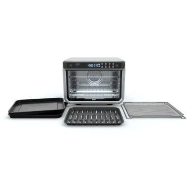 Meet the Ninja Foodi XL Pro Air Oven, the extra-large toaster oven and air fry oven with True Surround Convection. You get up to 10X the convection power of a traditional full-size convection oven, so you can make quick family meals on 2 levels, no rotating required. Plus, it features 10 cooking functions: Air Fry, Whole Roast, Air Roast, Bake, Dehydrate, Pizza, Broil, Toast, Bagel, and Reheat.