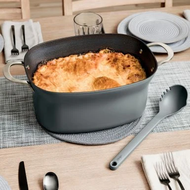 - Removable cooking pot is oven safe up to 500°F, so you can finish your meal in the oven for a crispy top.