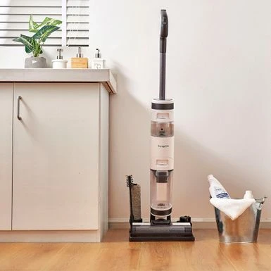Make cleaning your hard floors simple with Tineco’s iFloor 3 Plus. This floor washer packs an incredible amount of power into a compact size. When space is a concern, the iFloor 3 Plus is the perfect tool to have on hand. Not only will it fit into a small space, but it will replace your bulky mops and brooms. Lightweight and cordless, you can clean up any mess with little effort and scrub away sticky messes and built-up grime simply using tap water. The carefully designed brushes safely scrub hard floors, including linoleum, vinyl, marble, laminate, tile, and hardwood. Paired with a powerful suction force, the only thing left behind is a sparkling, dry floor. With 25 minutes of uninterrupted runtime, simply grab this handy wet/dry vac and get to work in any room in your home. If grimy mop water leaves you unnerved, the iFloor 3 Plus is your solution. With a dual-tank system, you’ll never push dirty water across your floors again. Instead, the cleaning tool delivers fresh water for every sweep of the floor. Powerful suction quickly removes dirty water and leaves behind a streak-free dry floor. The perfect cleaning partner for small spaces, you can tackle kitchen spills, bathroom grime, and dirty walkways in a matter of minutes. Store in a small space and grab and go anytime.
