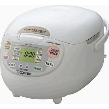 Get the perfect rice every time with this Zojirushi Neuro Fuzzy rice cooker and warmerHandy kitchen appliance features multi-menu selections5.5-cup computerized rice cooker features advanced Neuro Fuzzy logic technology Make the perfect rice every time by adding this Zojirushi Neuro fuzzy rice cooker to your kitchen. Large buttons with clear text make it easy to read labels at a glance and correctly choose settings. Keep rice at the ready to serve with dinner with the convenient warming feature. This cooker comes with recipes, measuring cups and other basic accessories, making the unit a good option for gifting a new bride or to warm a new home.